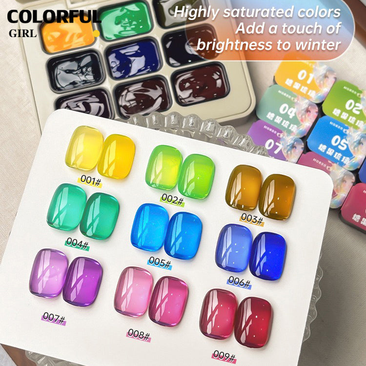 ✨พร้อมส่ง✨สีเจลไซรัป Solid Pat Gel 9-square series ยาทาเล็บ Pat กาว Delicate หนาสูง Saturation Blooming Gradient No-Wash ยาทาเล็บ 9 Grid Series