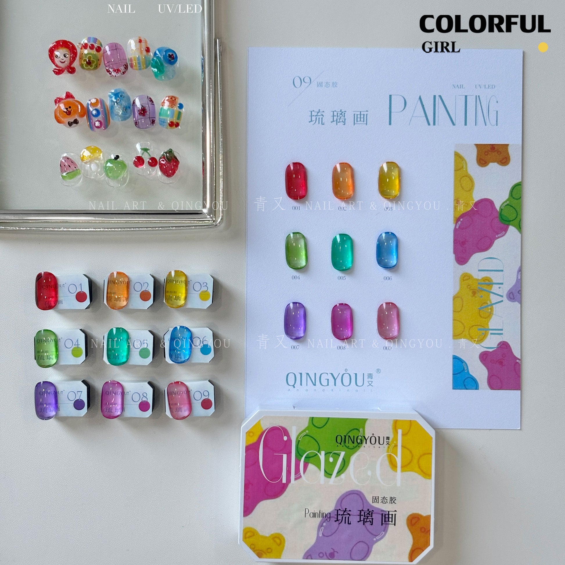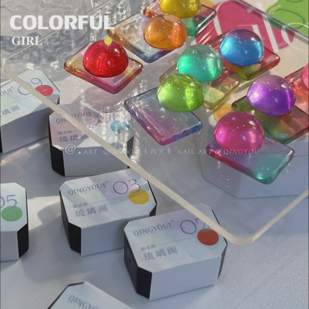 ✨พร้อมส่ง✨QINGYOU สีเจลไซรัป Solid Pat Gel 9-square series ยาทาเล็บ Pat กาว Delicate หนาสูง Saturation Blooming Gradient No-Wash ยาทาเล็บ 9 Grid Series
