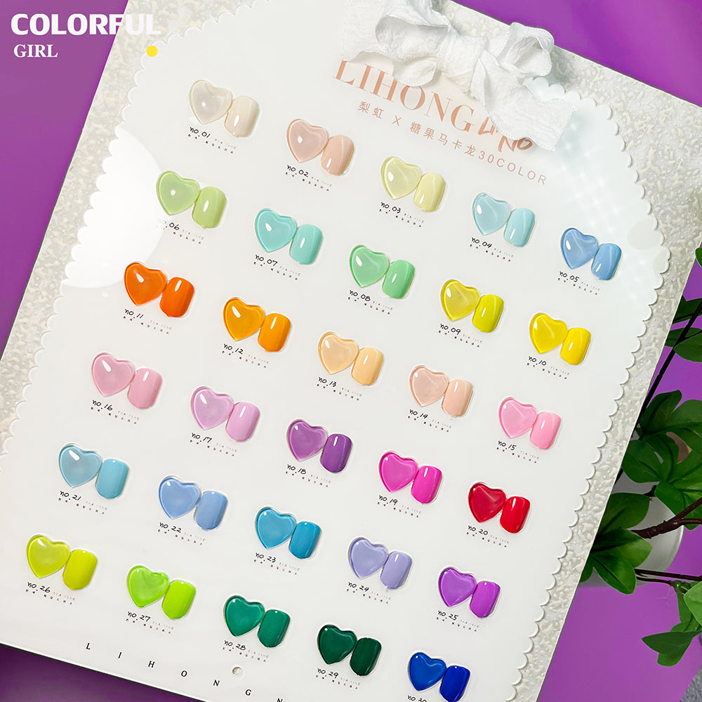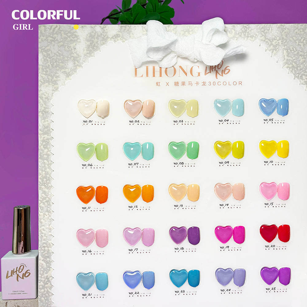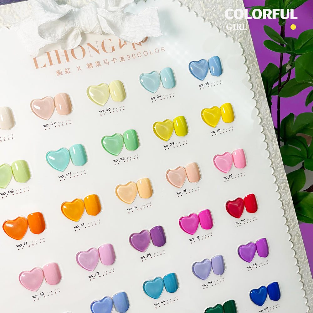 LIHONG 30 สี 1 ชาต( ขนาด 15ml) พร้อมชาร์ทโชว์ มาการองสี 30 สี สีเจล LIHONG สีเจลสีพื้น