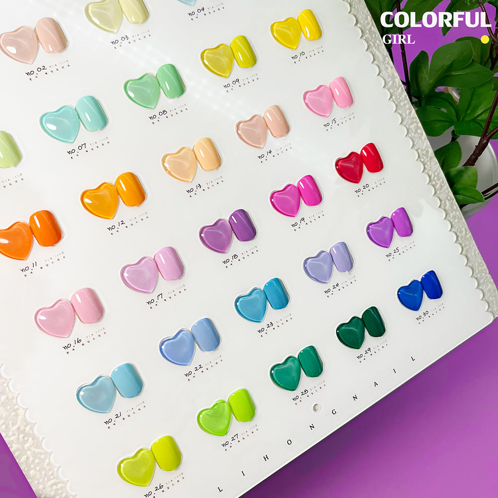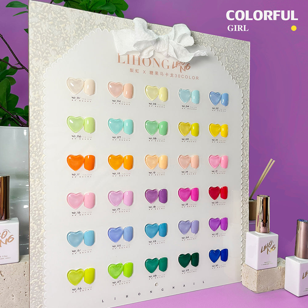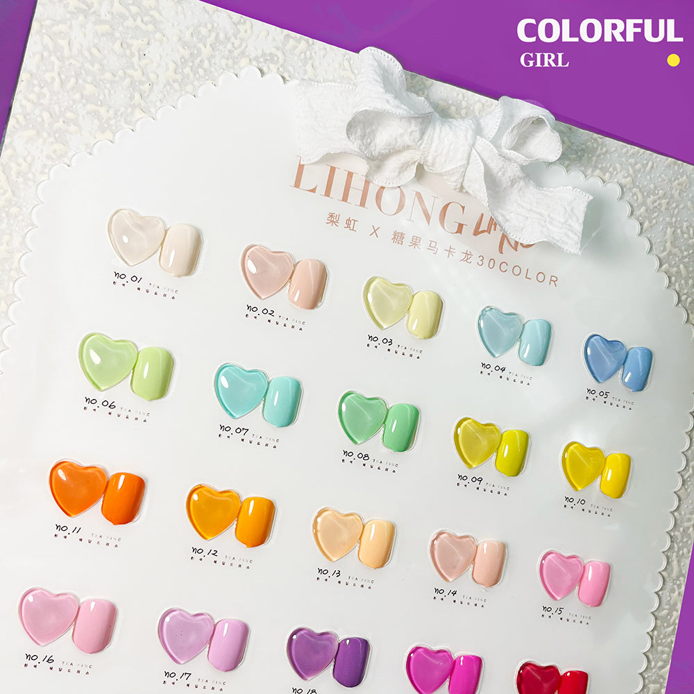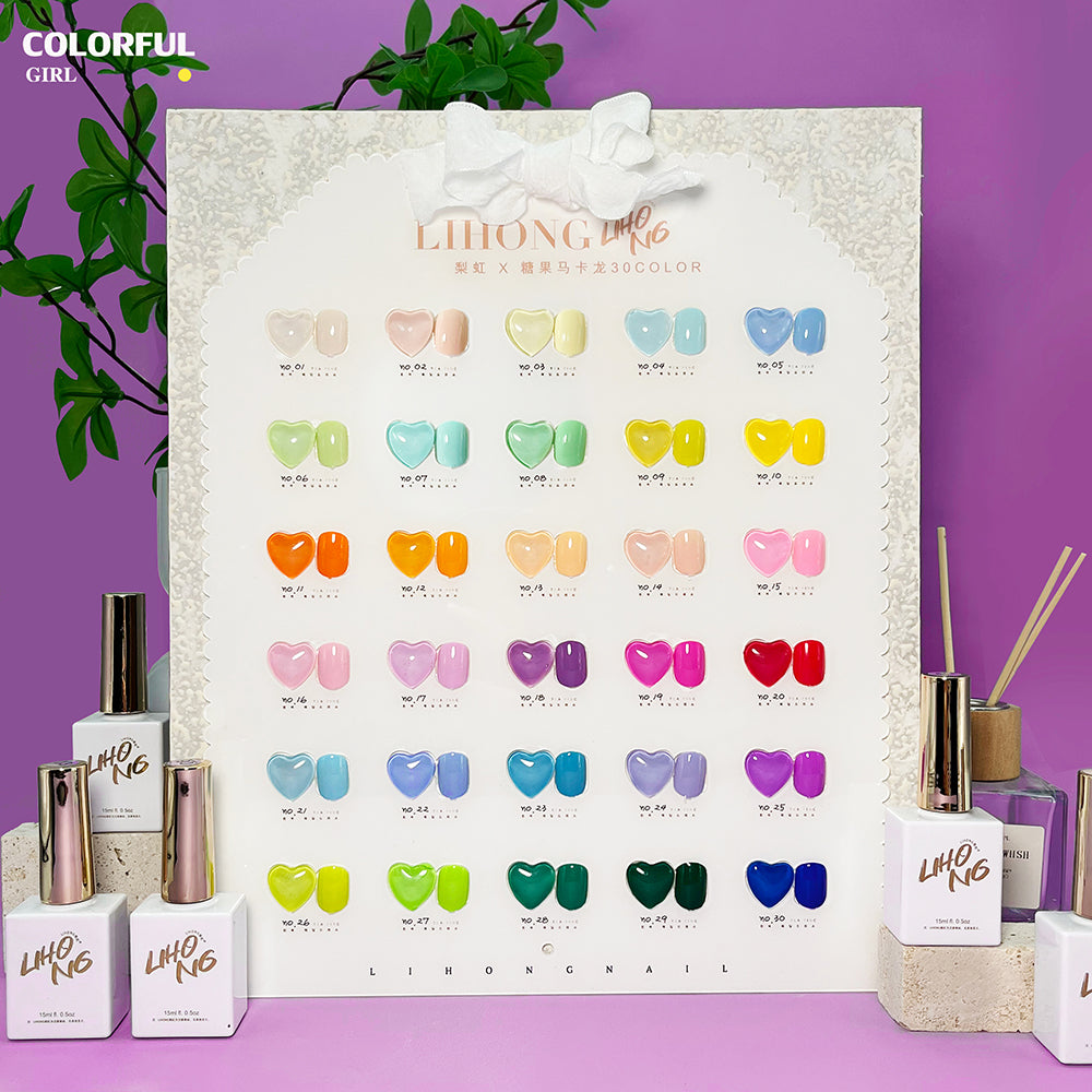 LIHONG 30 สี 1 ชาต( ขนาด 15ml) พร้อมชาร์ทโชว์ มาการองสี 30 สี สีเจล LIHONG สีเจลสีพื้น
