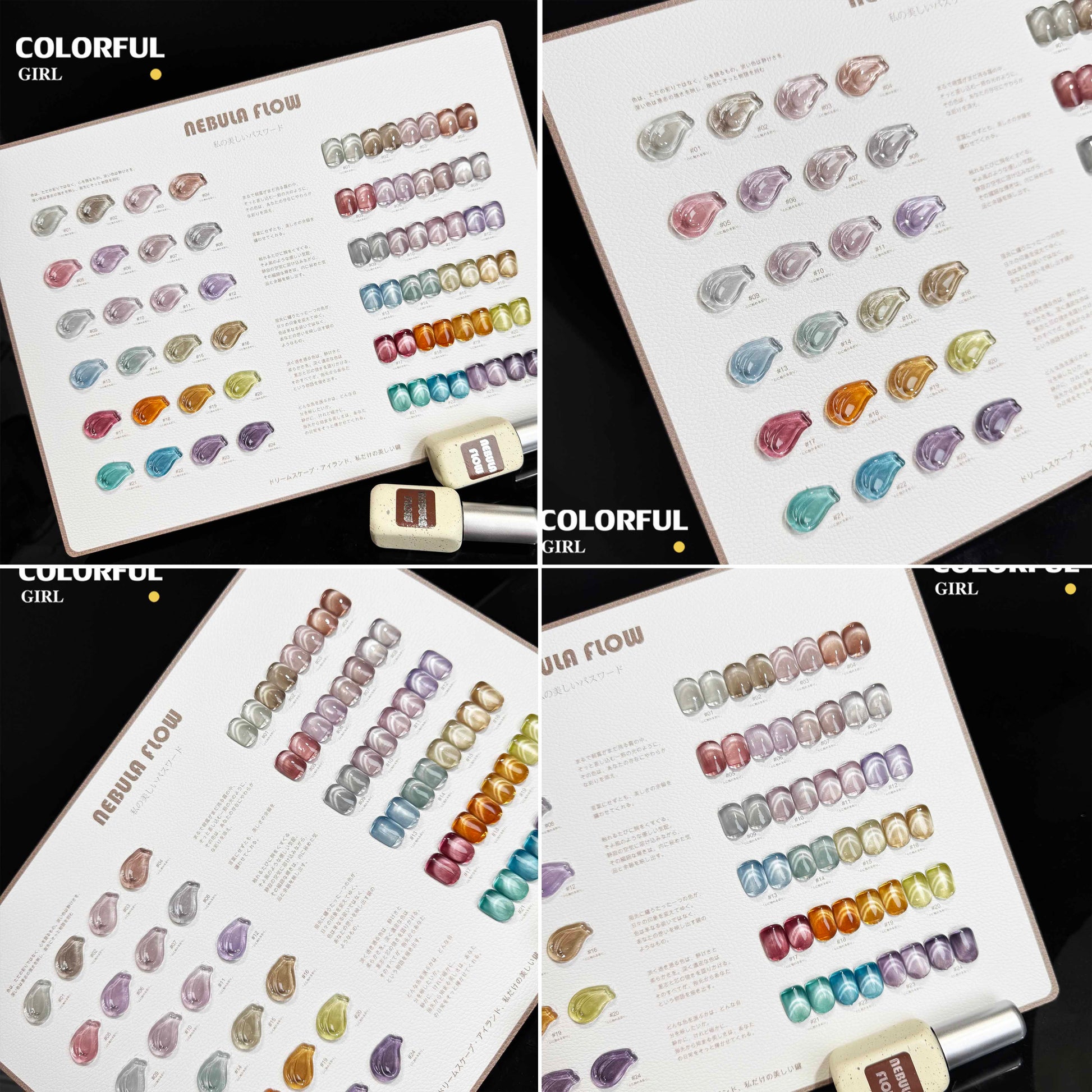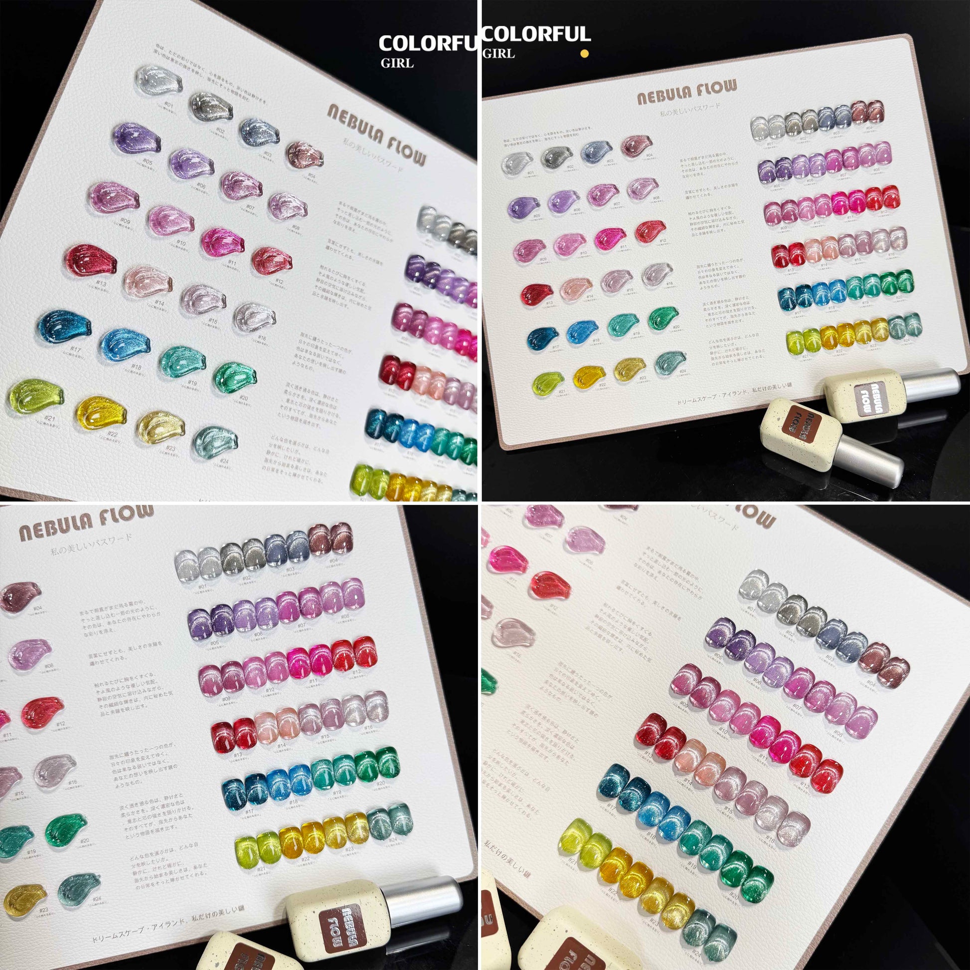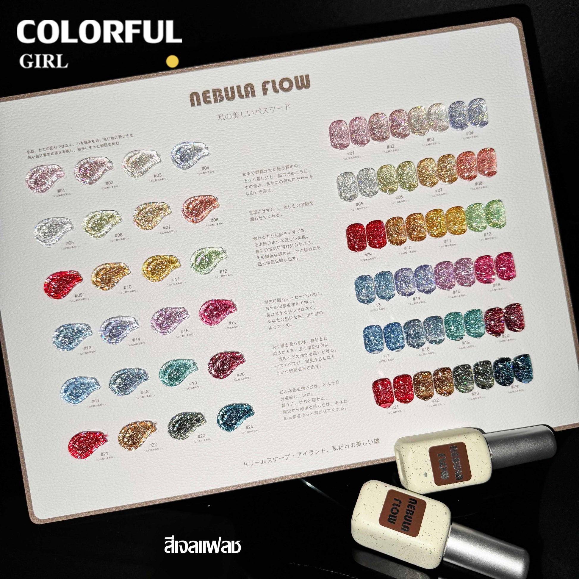 NebulaFlow ใหม่ 24 สีเจลพร้อมส่ง 🎉 สีครบทุกโทน แถมชาร์ทสีสุดน่ารัก | ไซรัป แคทอายเนื้อซาติน แฟลช แคทอาย