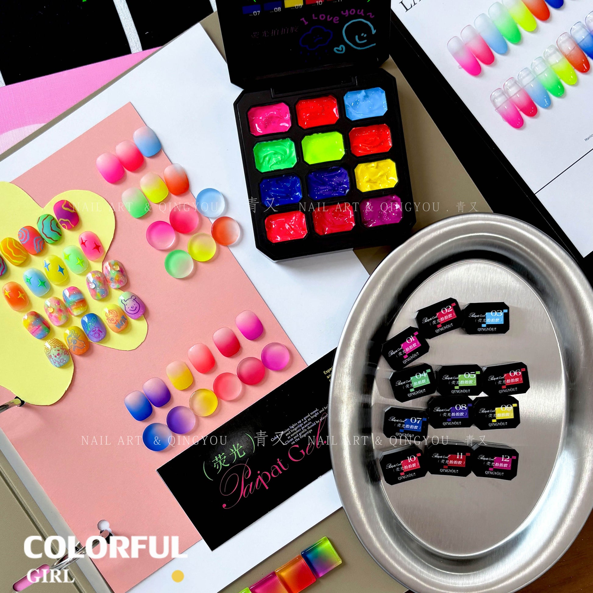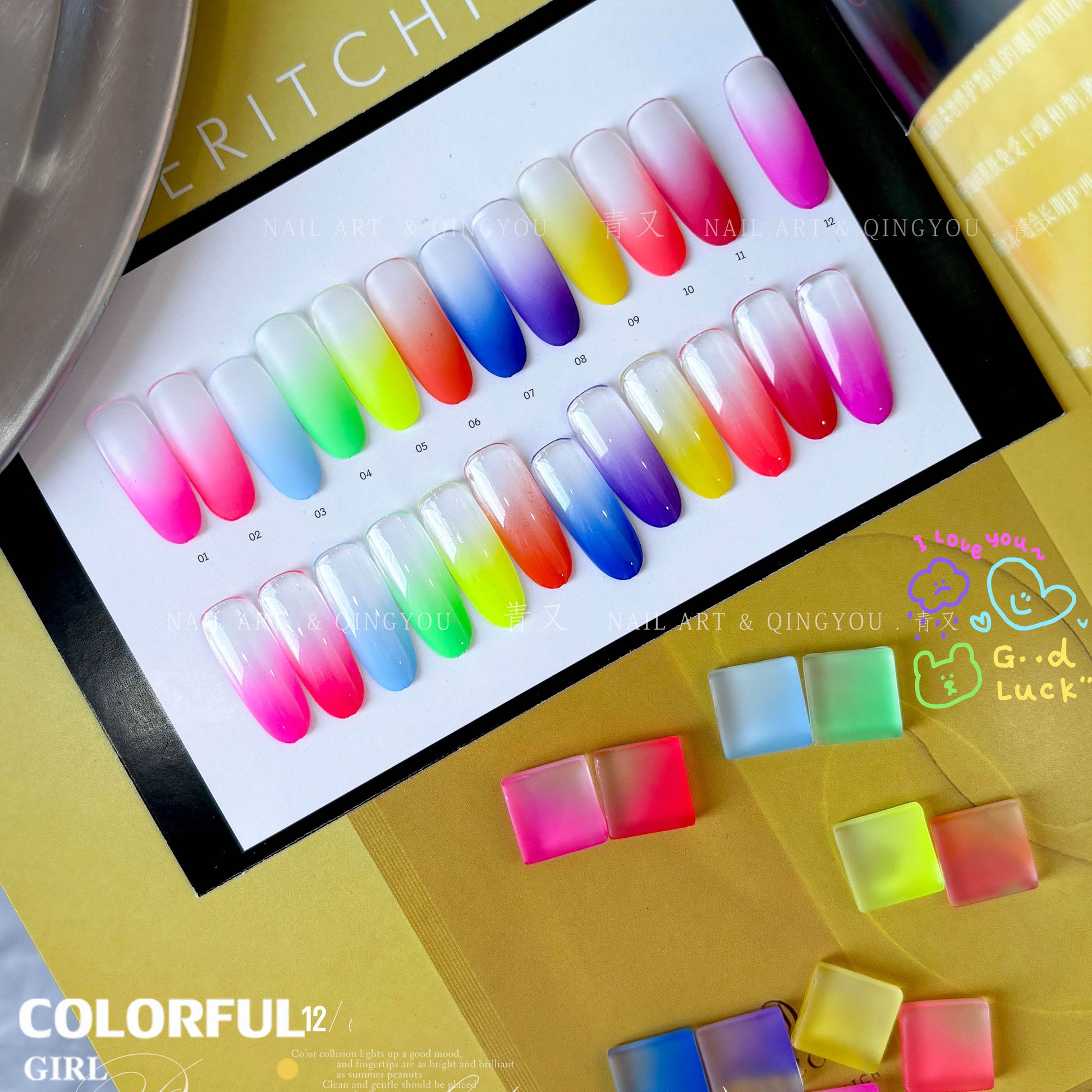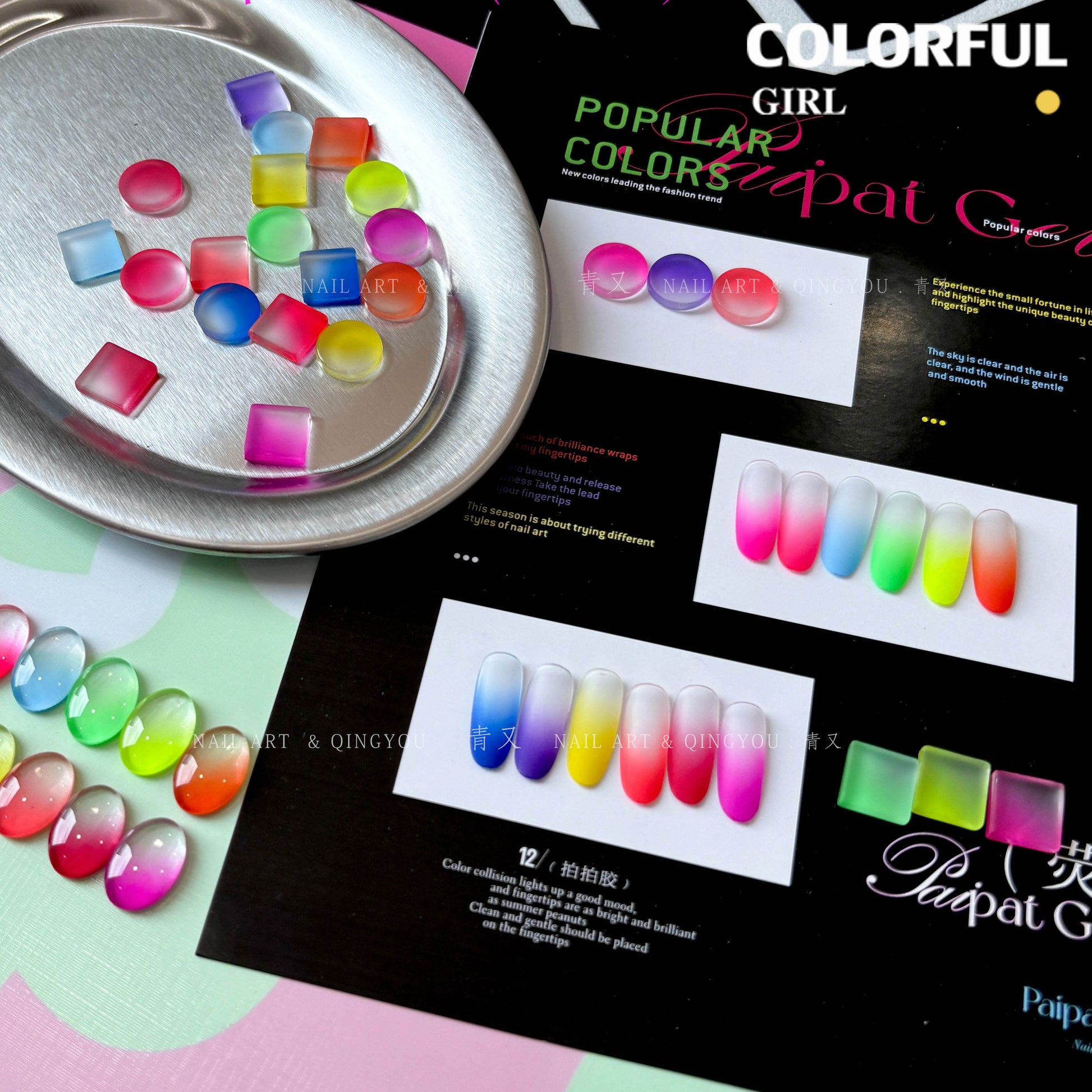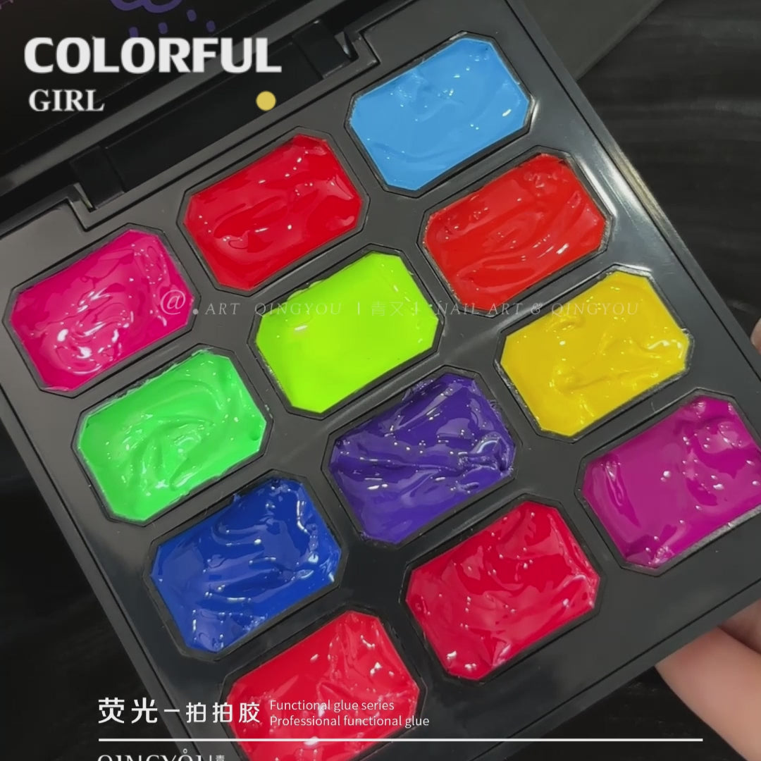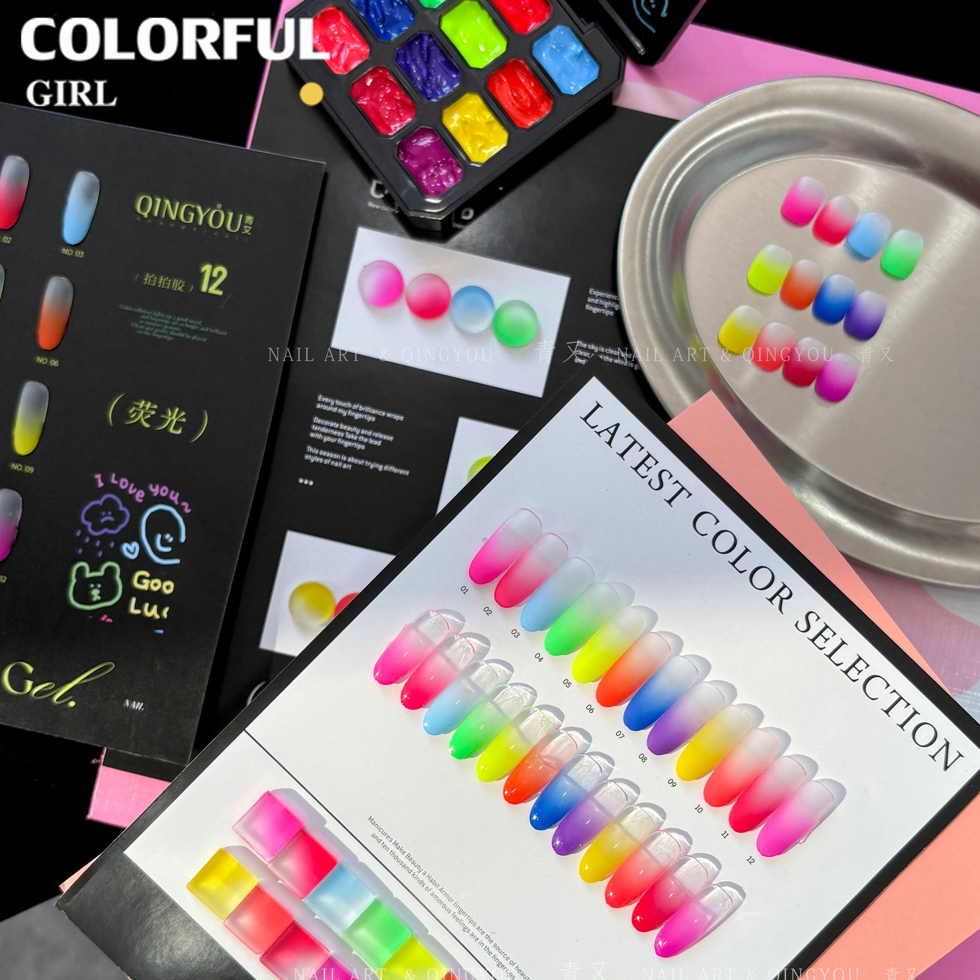 QINGYOU เล็บเจล 1 ชิ้น สีไล่เฉด ใหม่Solid Pat Gel 12-square series ยาทาเล็บ, กาวทาสี, ยาทาเล็บสีทึบ