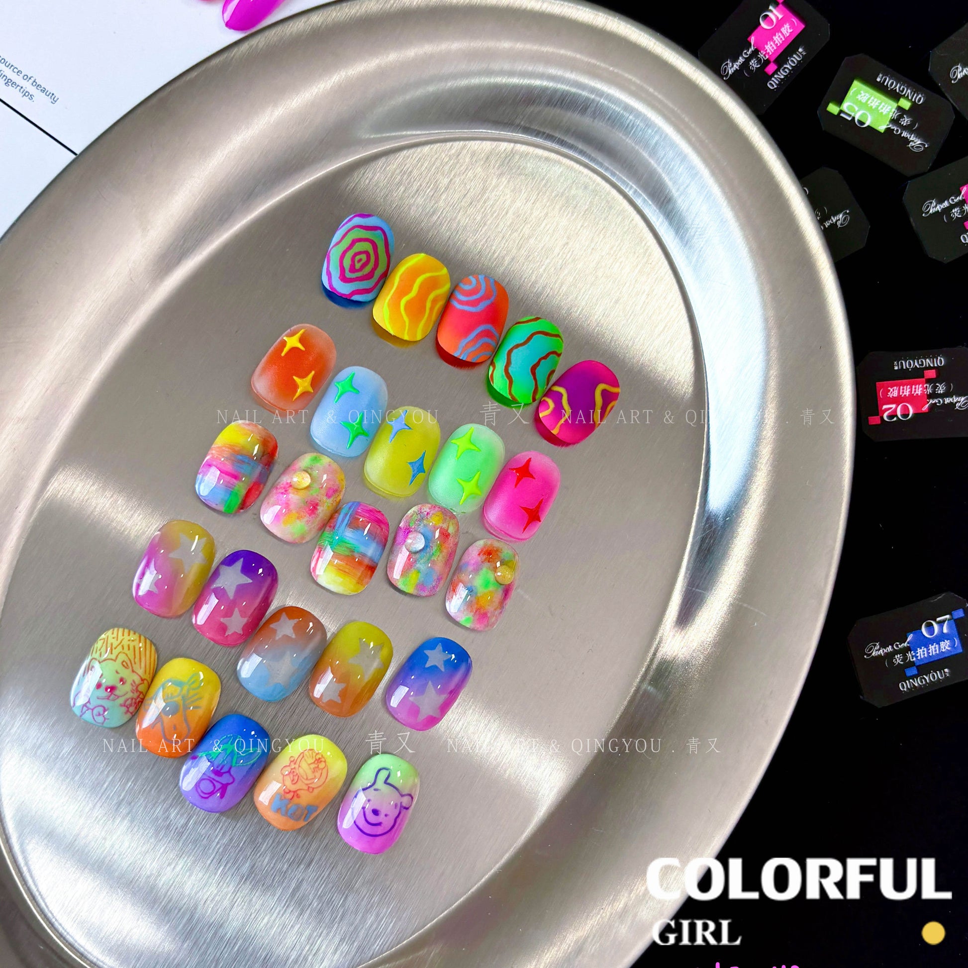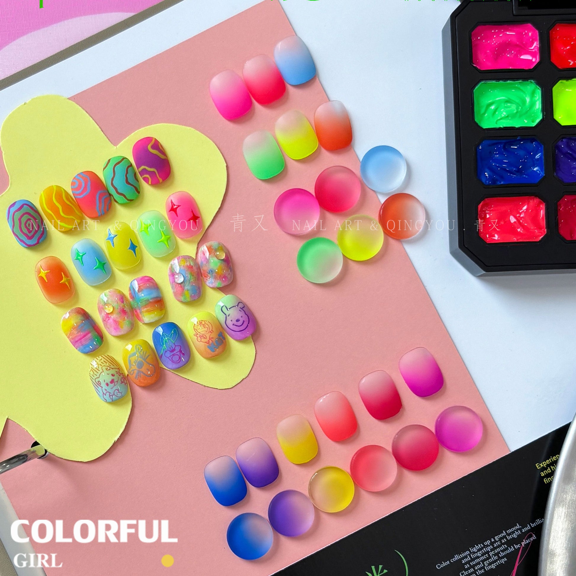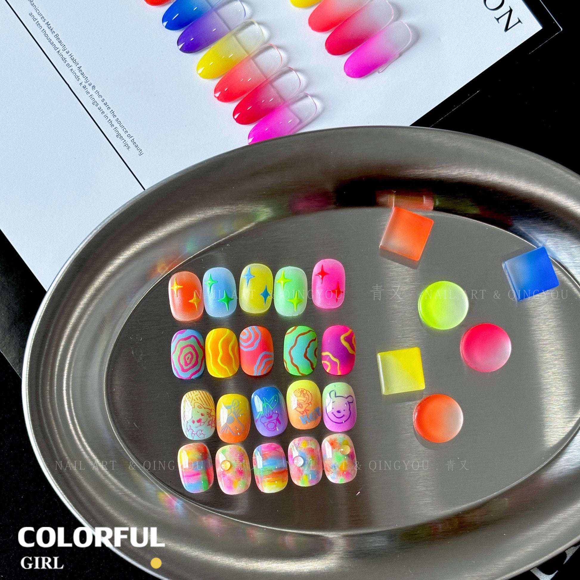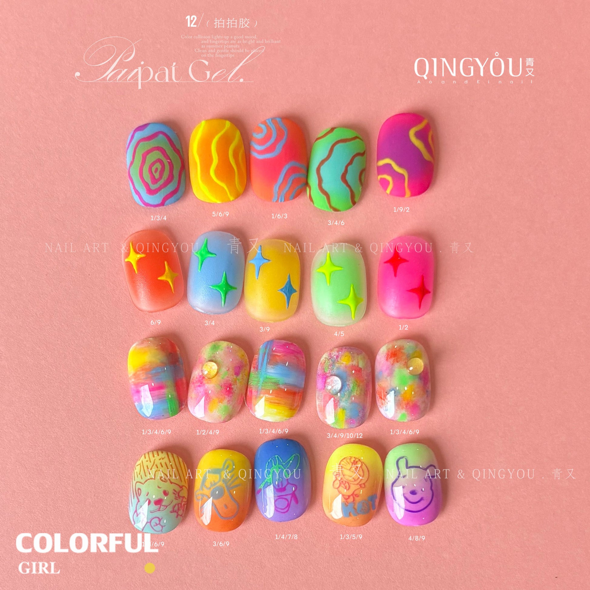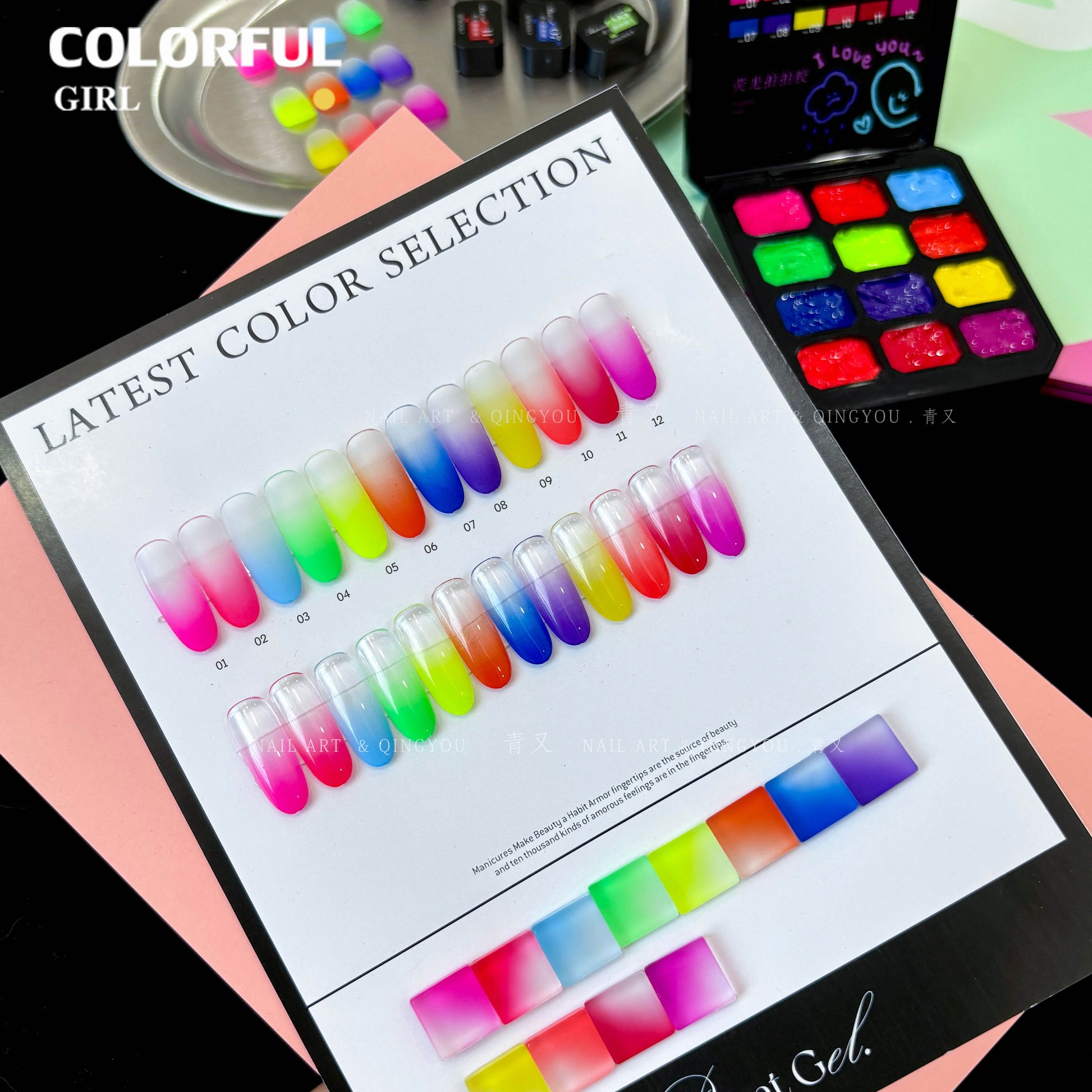 QINGYOU เล็บเจล 1 ชิ้น สีไล่เฉด ใหม่Solid Pat Gel 12-square series ยาทาเล็บ, กาวทาสี, ยาทาเล็บสีทึบ
