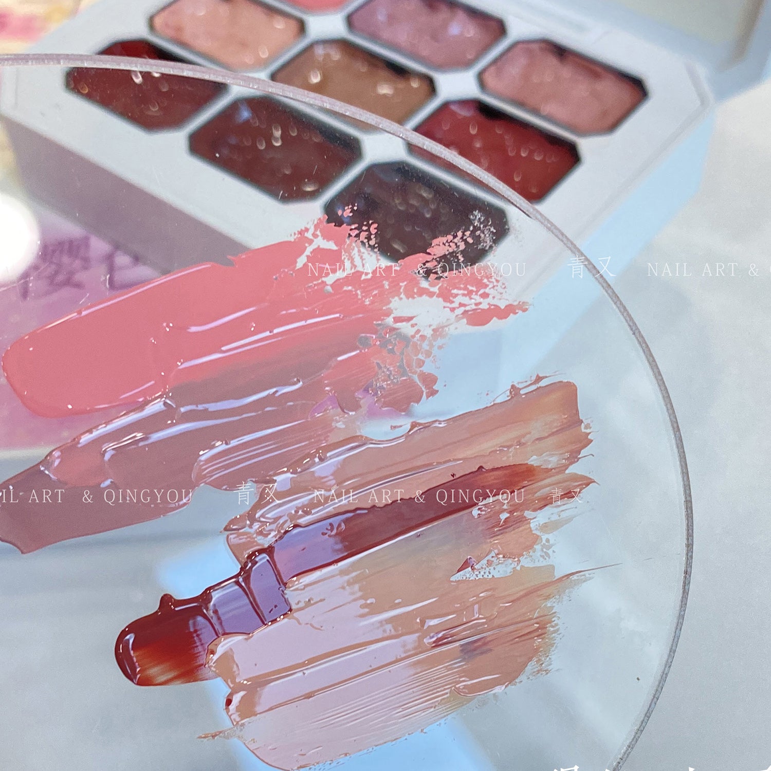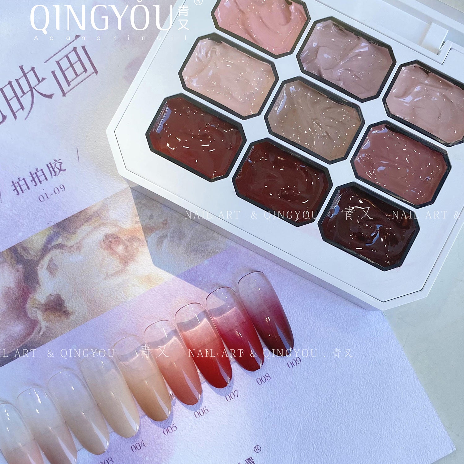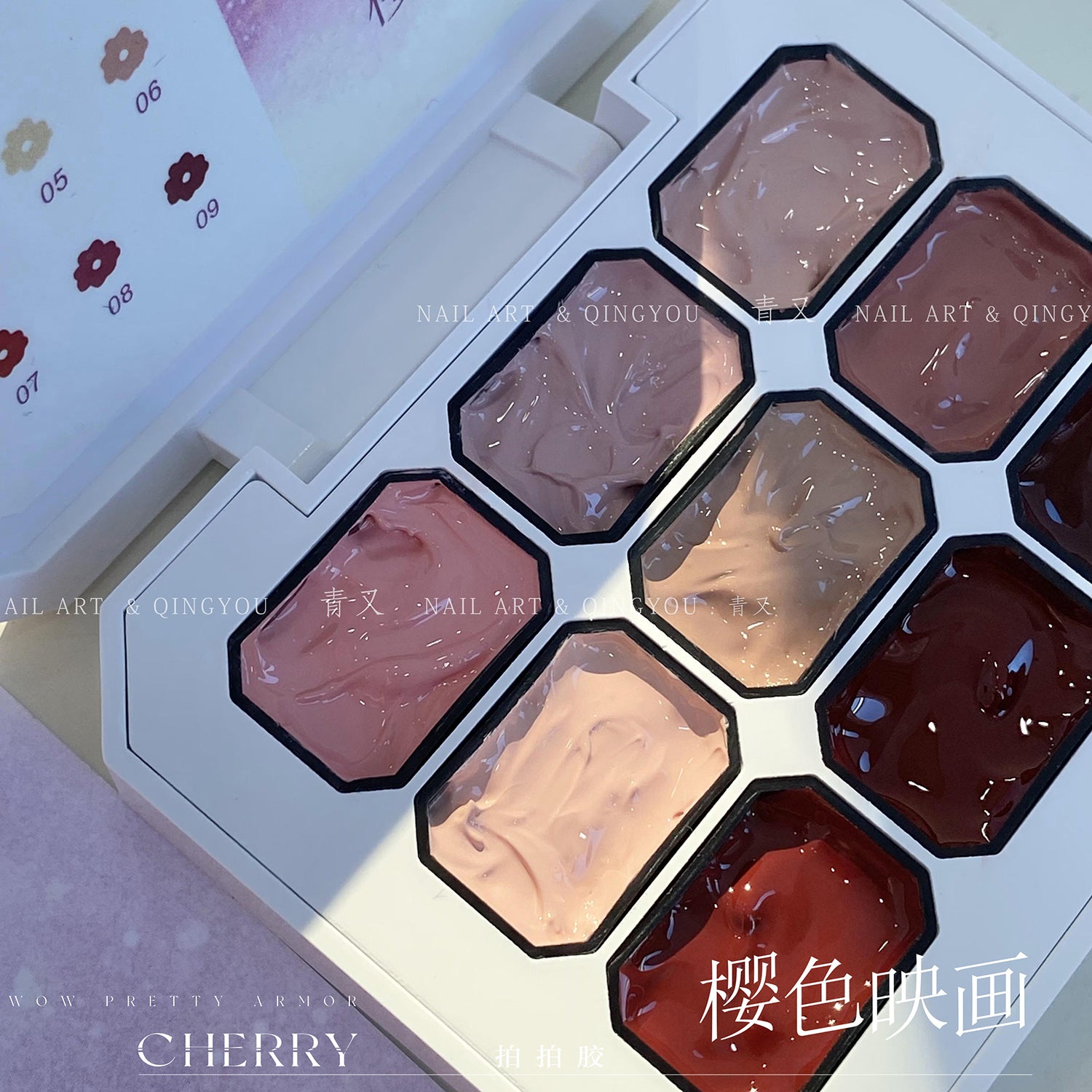 QINGYOU สีชมพู เล็บเจล 1 ชิ้น ใหม่Solid Pat Gel 9-square series หลากสี แถมพาเลตอะคริลิคใส ยาทาเล็บ, กาวทาสี, ยาทาเล็บสีทึบ