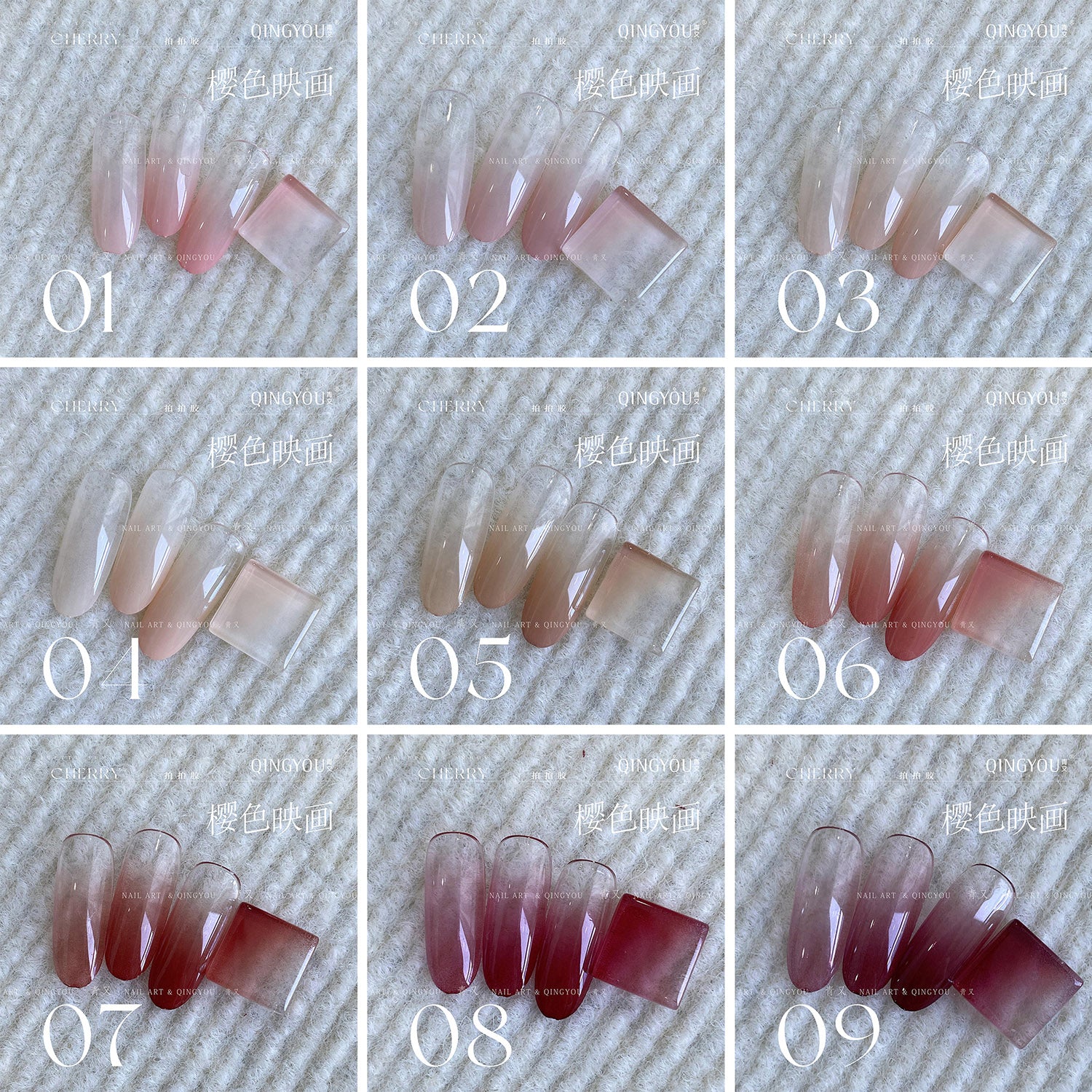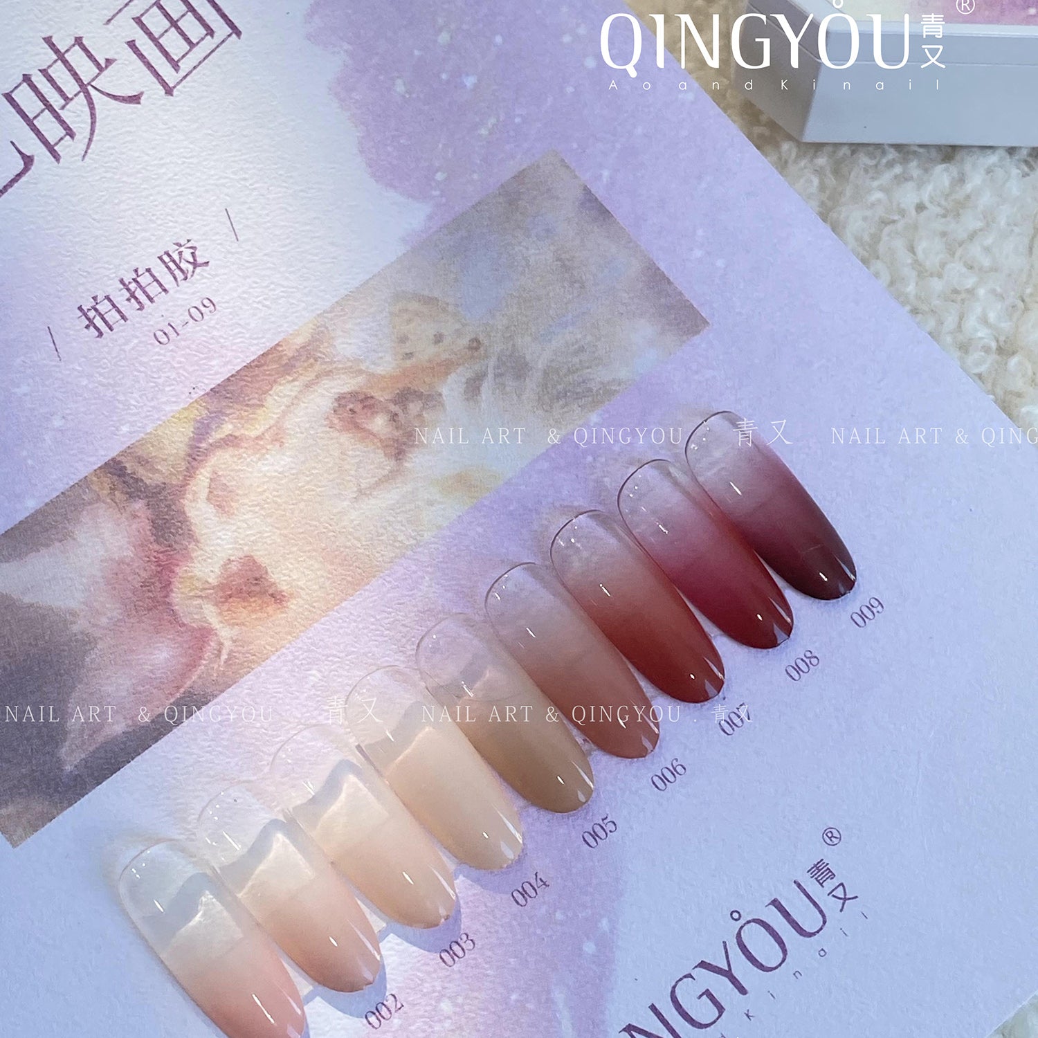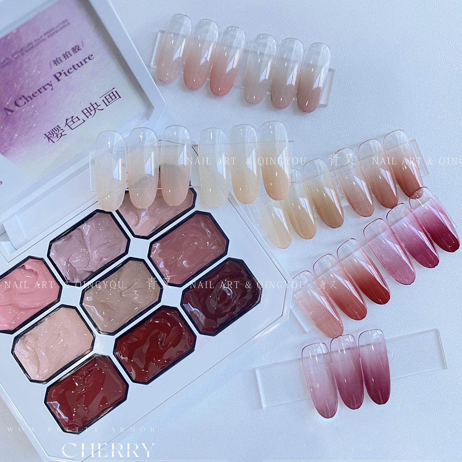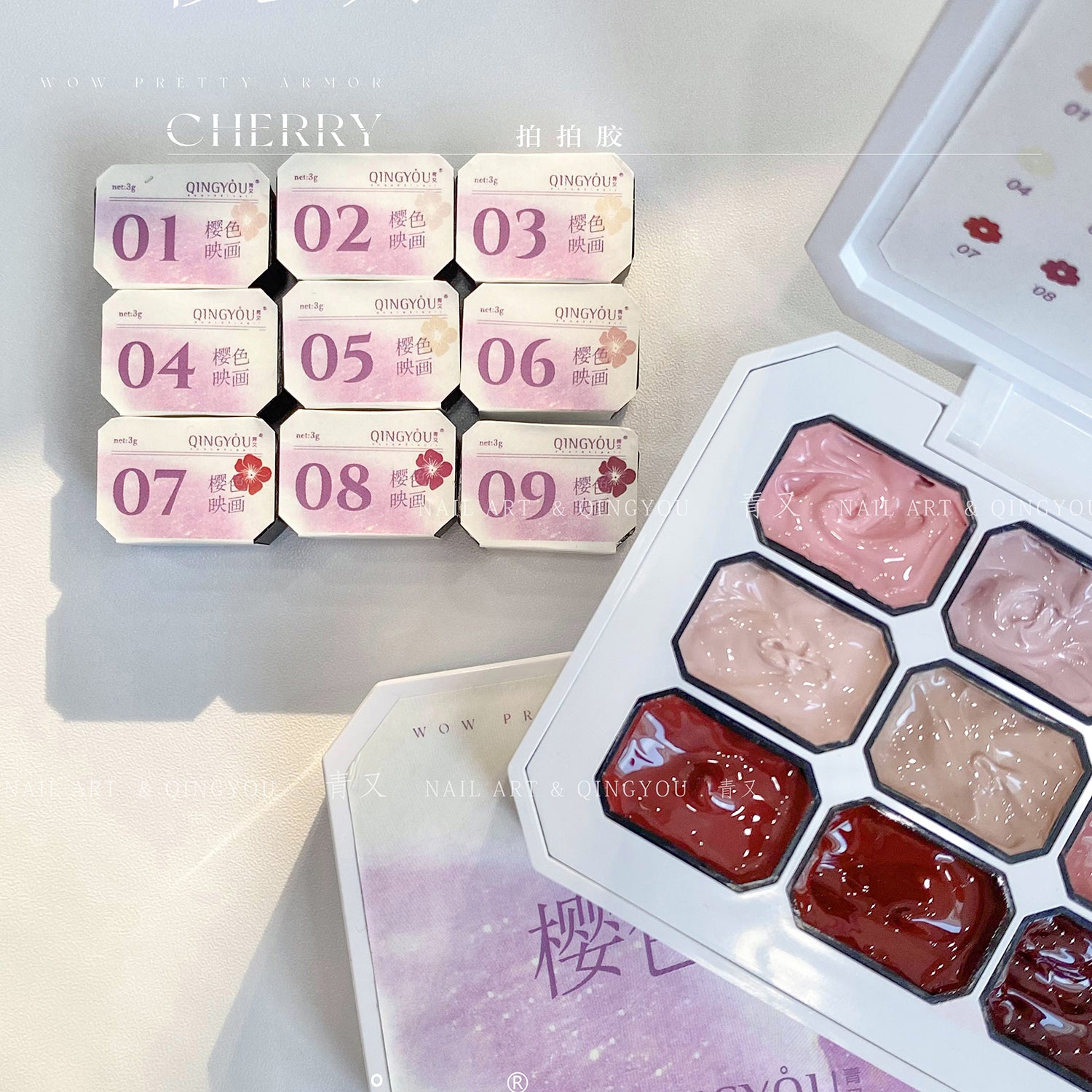 QINGYOU สีชมพู เล็บเจล 1 ชิ้น ใหม่Solid Pat Gel 9-square series หลากสี แถมพาเลตอะคริลิคใส ยาทาเล็บ, กาวทาสี, ยาทาเล็บสีทึบ
