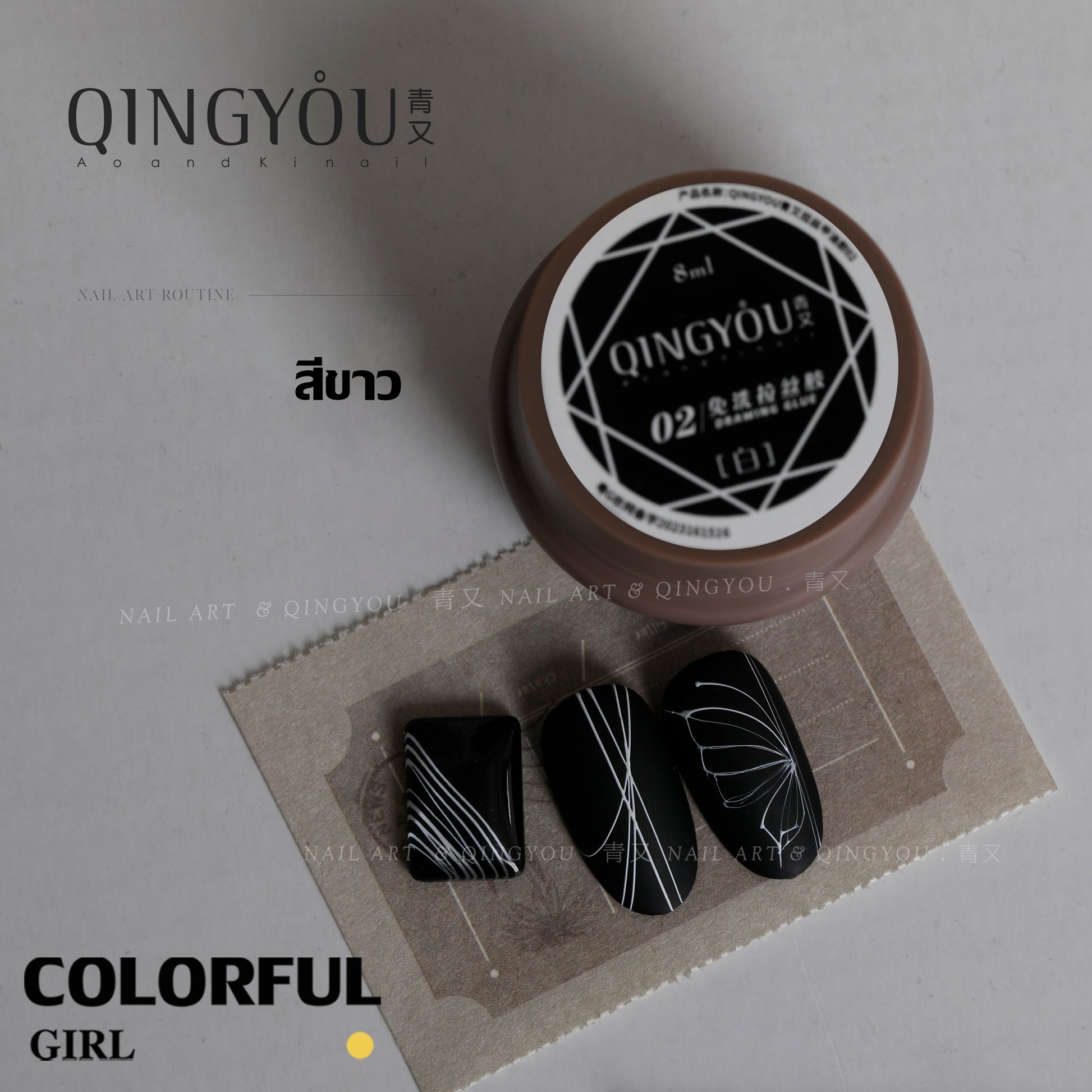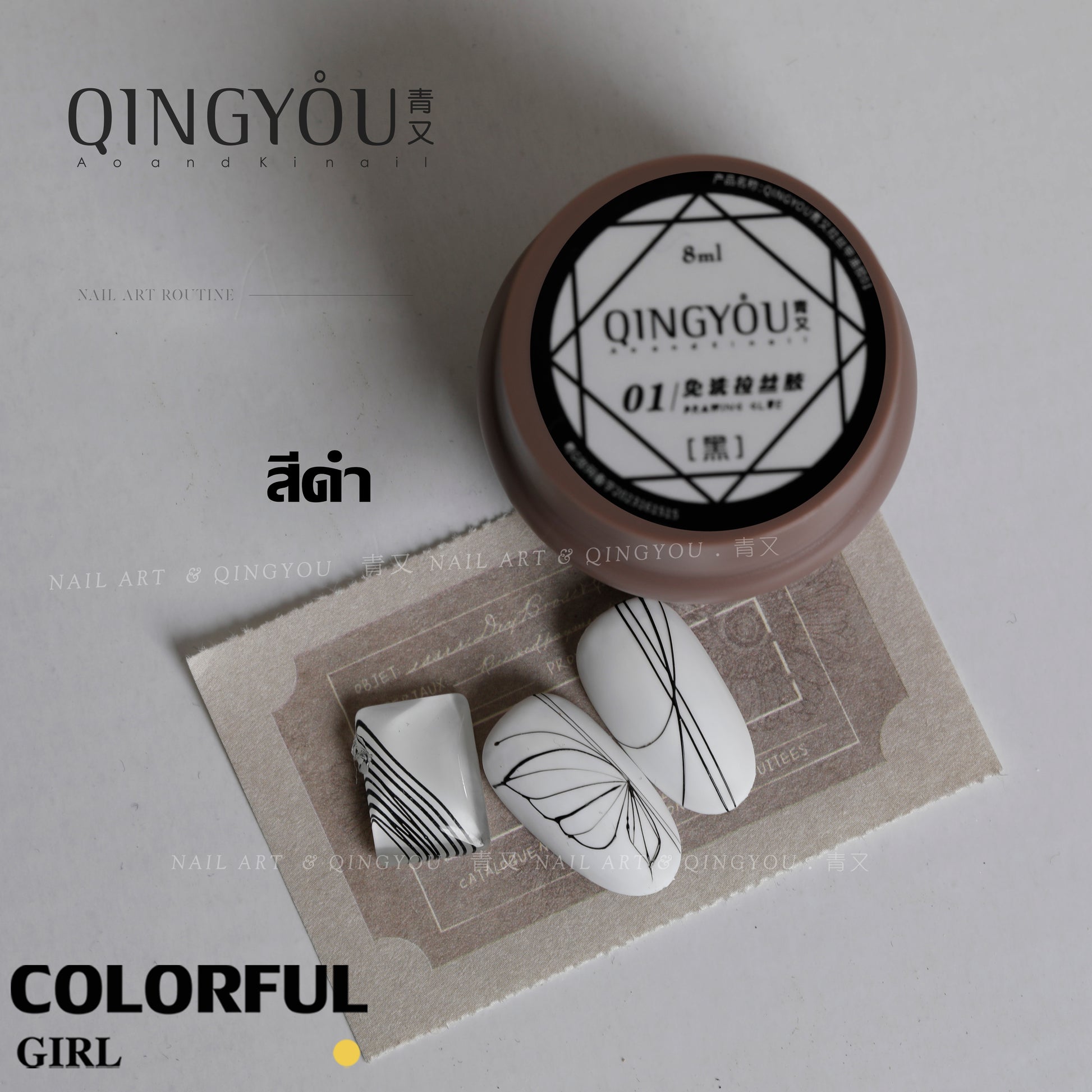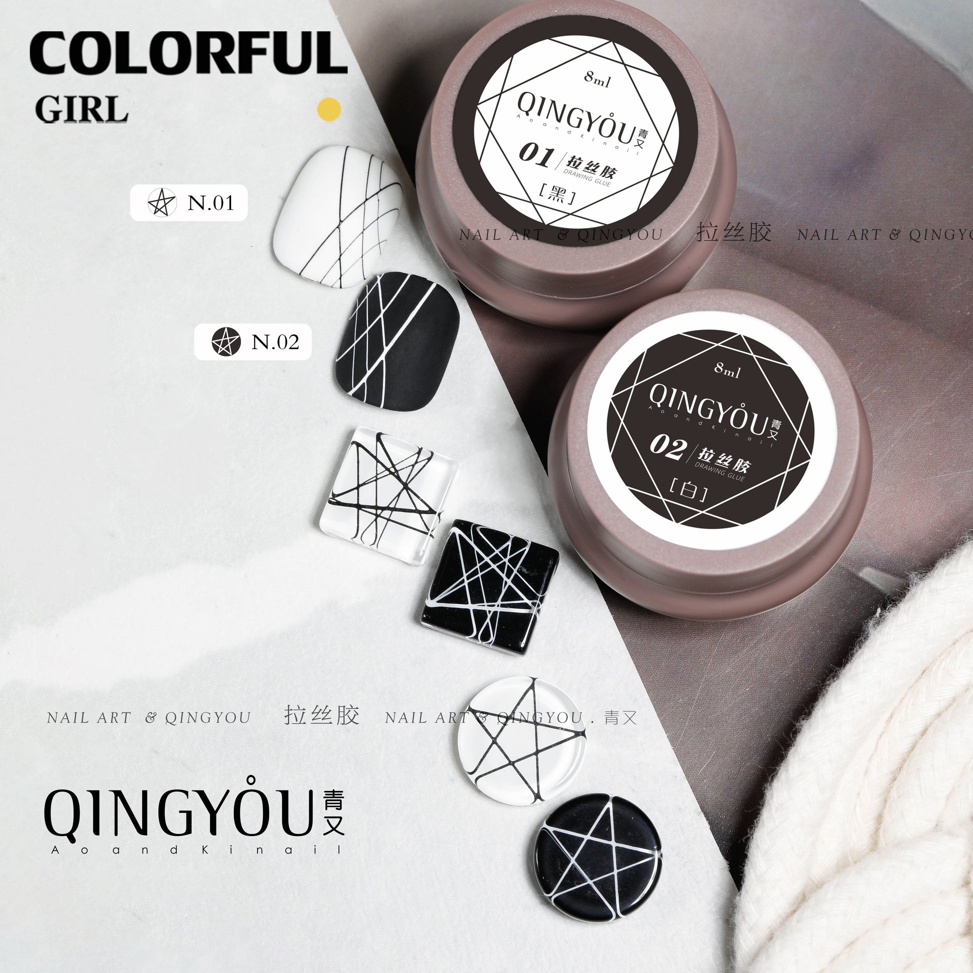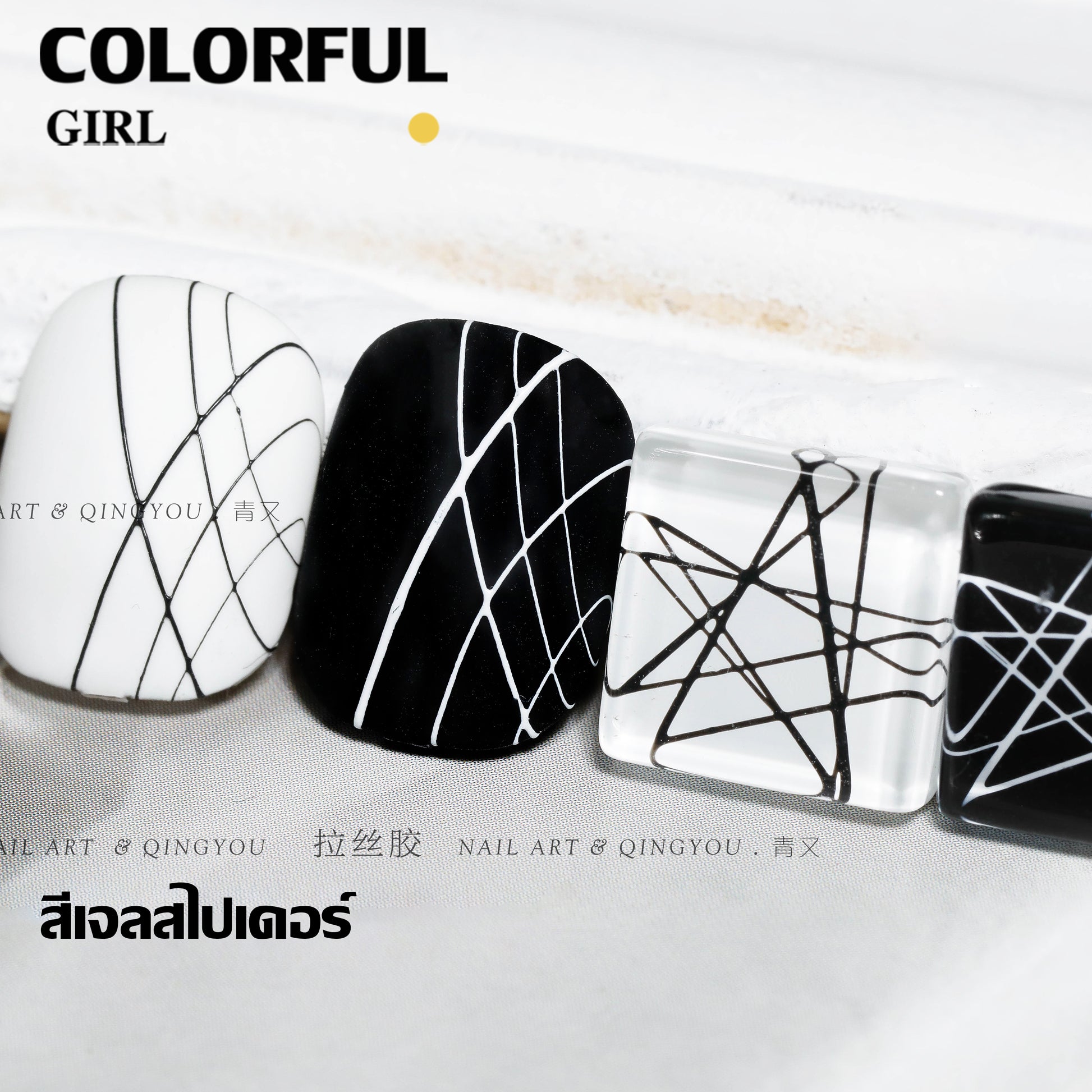 QINGYOU สไปเดอร์เจลดํา ขาว8g เส้นใยแมงมุม ใหม่ สายกาว แบบดึง ยืดหยุ่น สําหรับตกแต่งเล็บ DIY