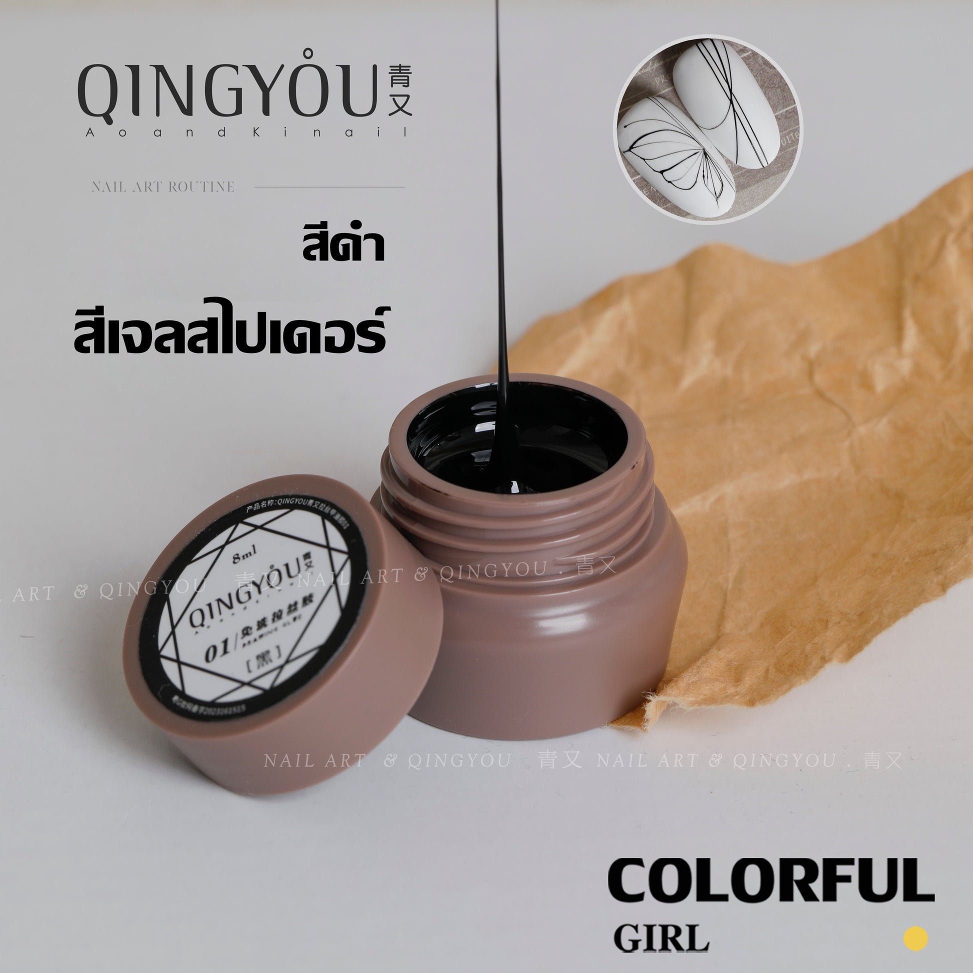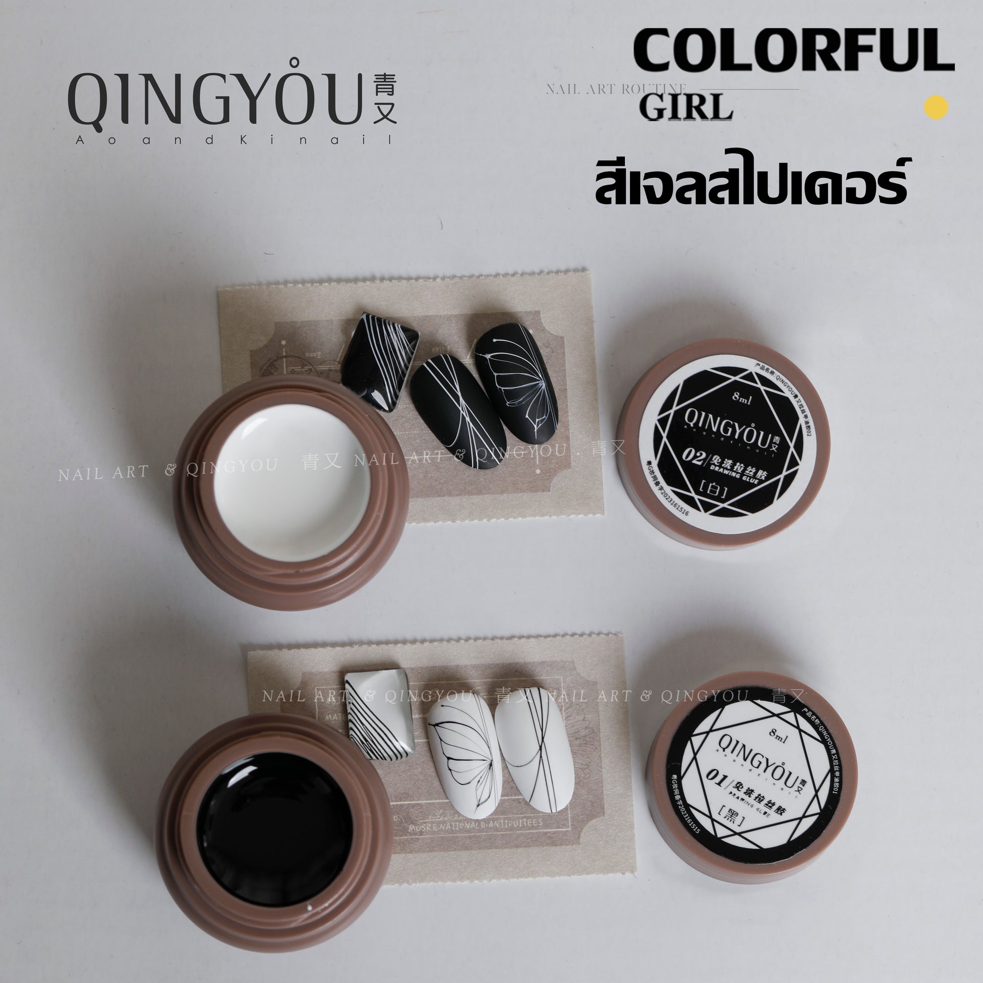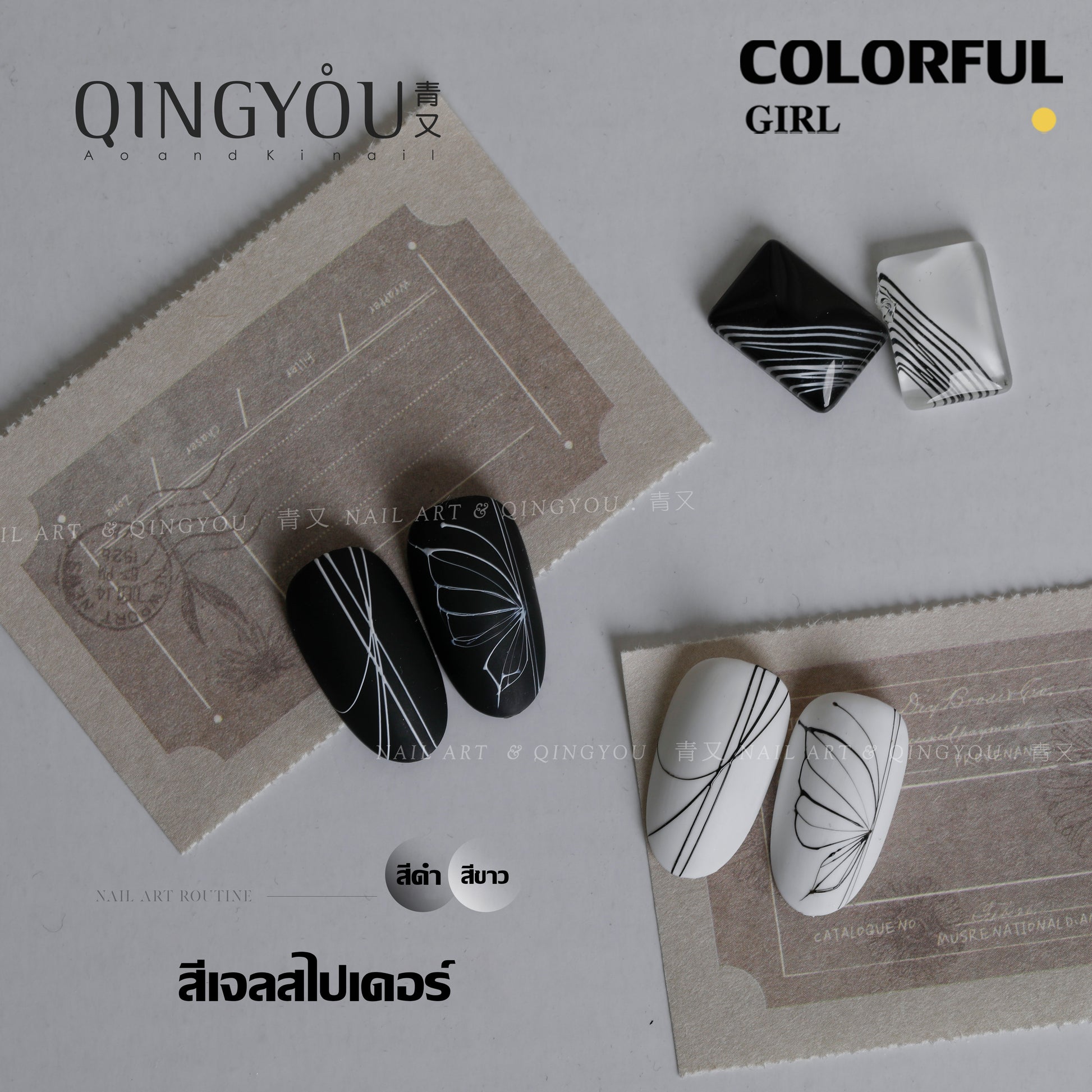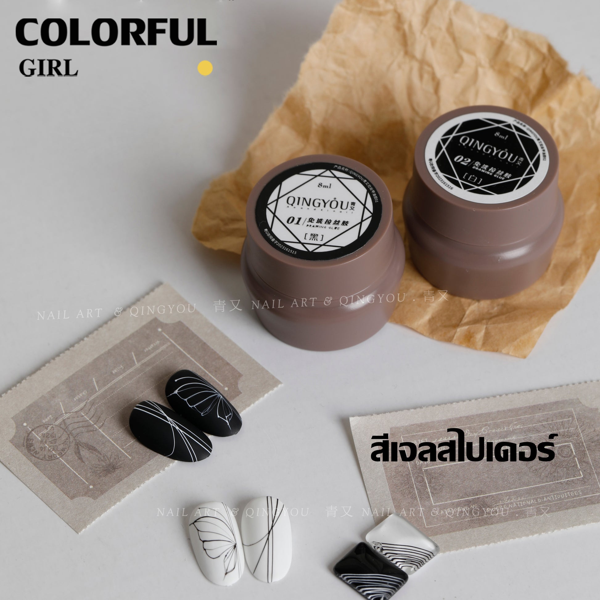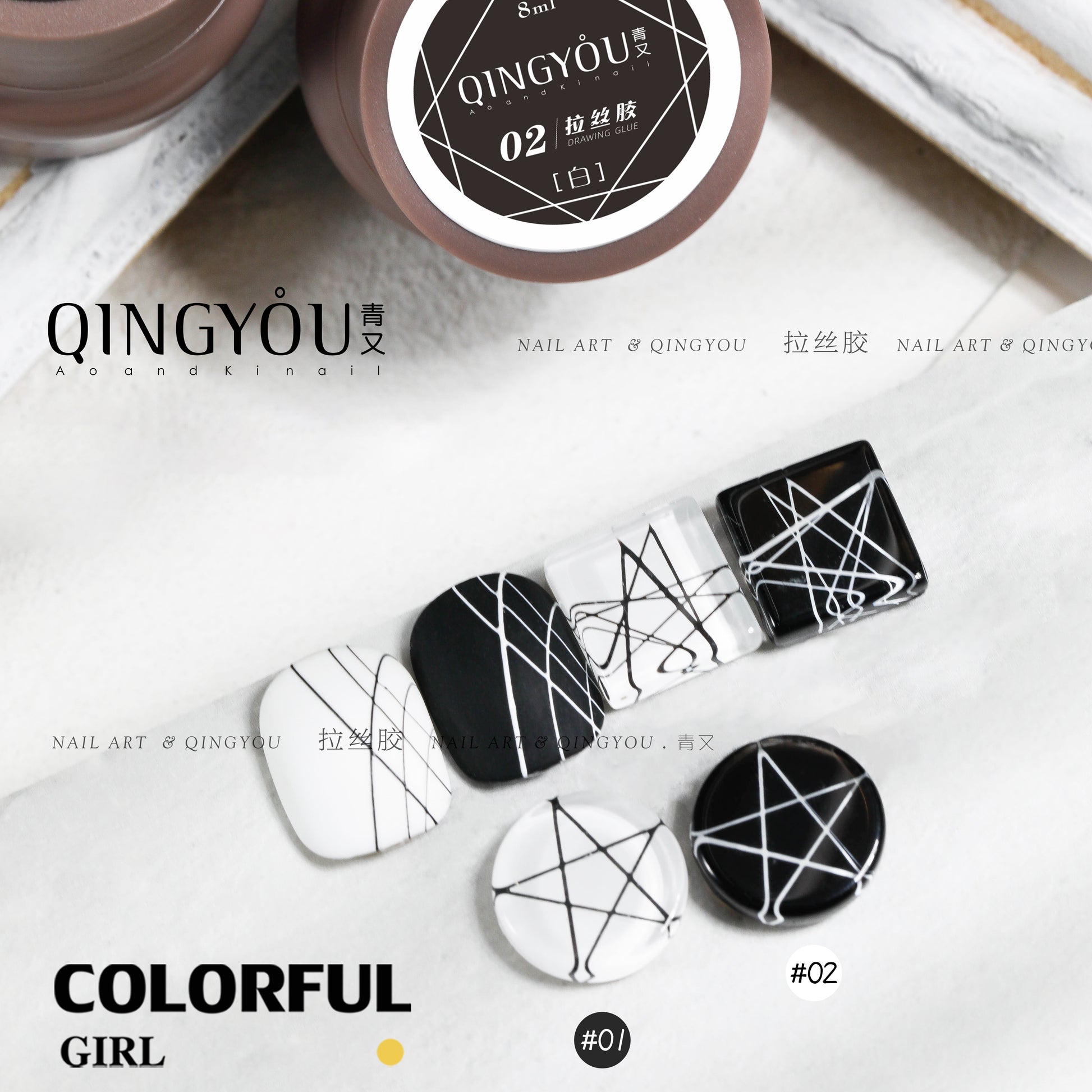 QINGYOU สไปเดอร์เจลดํา ขาว8g เส้นใยแมงมุม ใหม่ สายกาว แบบดึง ยืดหยุ่น สําหรับตกแต่งเล็บ DIY